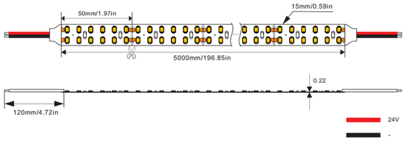 首页 > LED软灯带 > 单色灯带 >   高效率SMD2835 15mm单色LED灯条 240LEDs/M DC24V